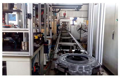 新松變速箱生產線,由總裝段,試驗段、分裝段等環節組成,可完成零件的分裝試驗、總成裝配等任務、進而實現自動壓裝、機器人自動涂膠、自動擰緊、選墊測漏、注油等工作.生產線以環形輸送輥道上運行的物流托盤作為工位移動的載體,具備防錯、取料提示、確認等相關功能,可實現零件的信息跟蹤。